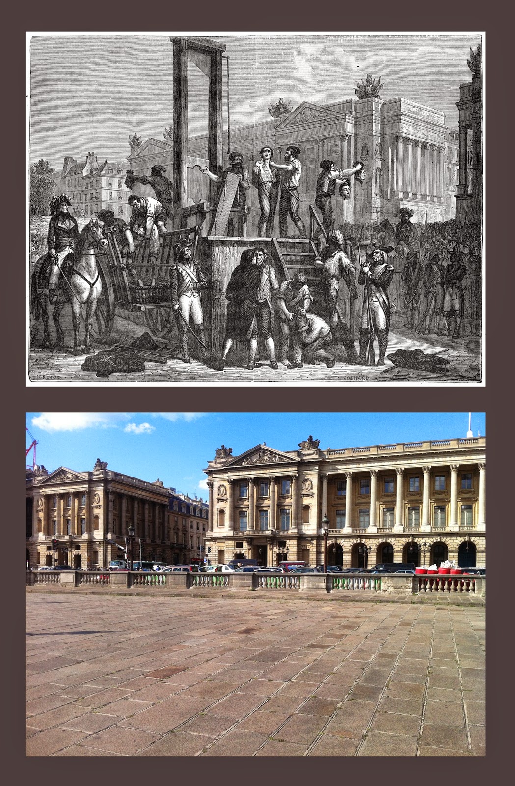 Et donc, suite logique, ce lundi 28 juillet ou 10 thermidor, c'était le 220ème anniversaire de l'exécution de l'Incorruptible et de ceux que la réaction a appelé ses "complices" sur la place de la Révolution, actuelle place de la Concorde. Je ne sais pas au mètre près où était dressé l'échafaud, mais c'était en gros entre le centre de la place et l'Hôtel de la Marine.